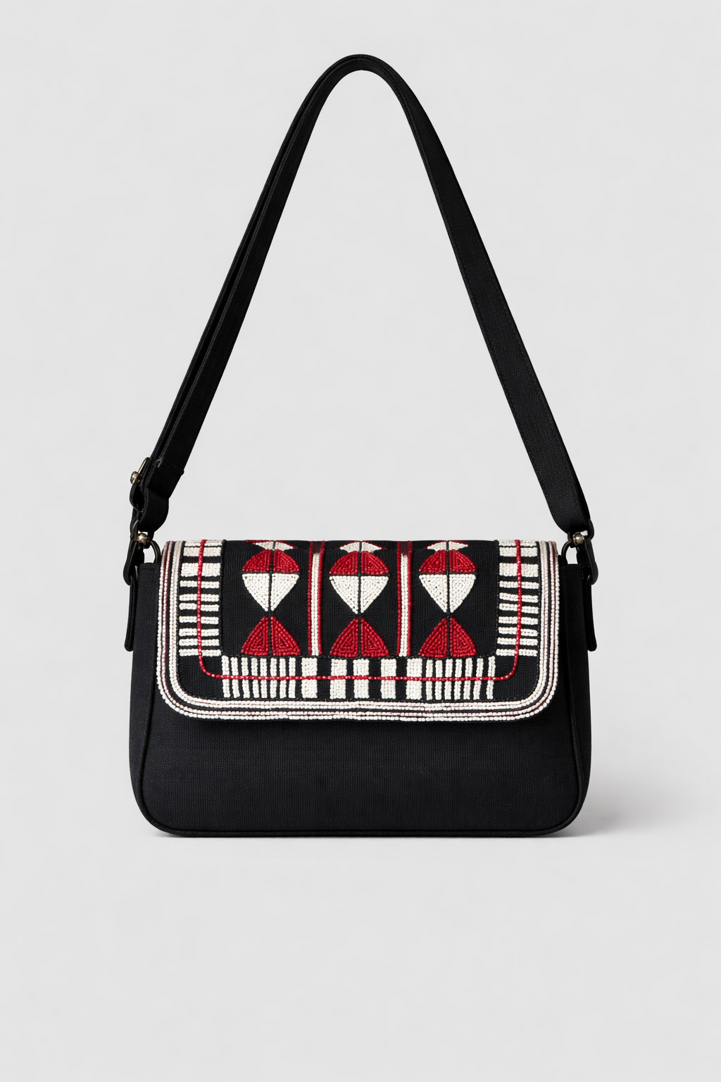 This Handcrafted Tribal-Inspired Shoulder Bag blends heritage-inspired patterns with a clean, modern form. Carefully detailed with geometric motifs, it reflects traditional craftsmanship while remaining versatile for everyday use.